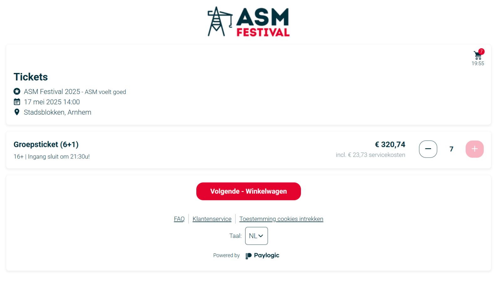 Selecteer het groepsticket en klik onderin op ‘Volgende – Winkelwagen’.