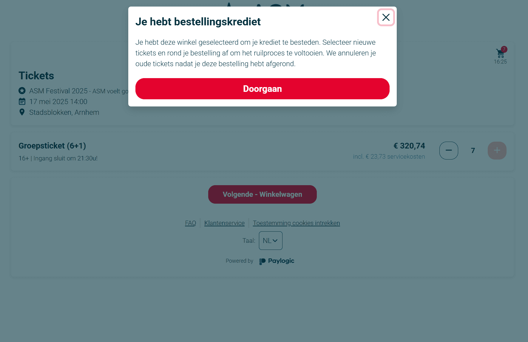 Selecteer het groepsticket en klik onderin op ‘Volgende – Winkelwagen’.