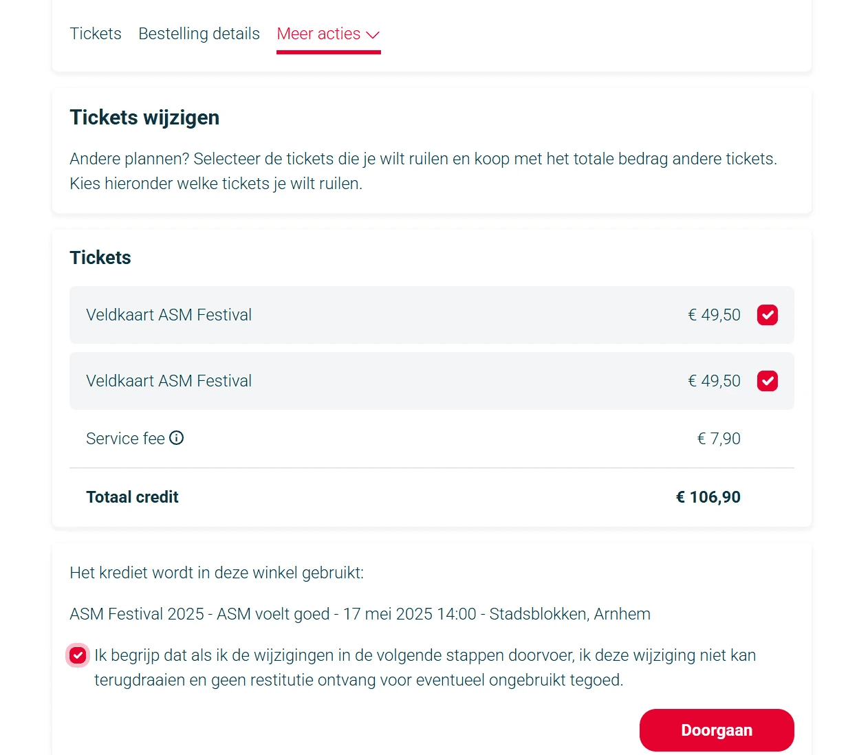 Let op: Je oude tickets worden geannuleerd bij het ruilproces.